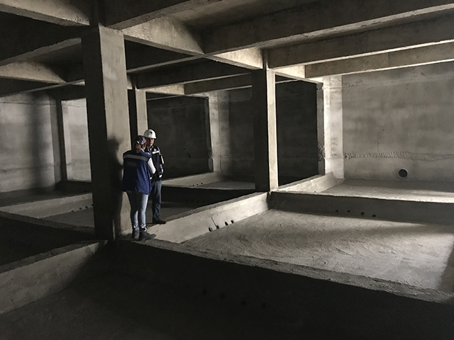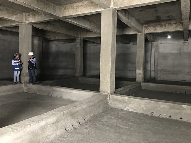 Para ello, se recomendó una solución consistente en una capa de Xypex Concentrado para la losa fondo, muros y columnas, seguido de una segunda capa de Xypex Modificado en todas las superficies. Es importante destacar que hubo necesidad de aplicar Xypex Patch’n Plug en todas las juntas frías, constructivas y zonas críticas que presentaban oquedades.